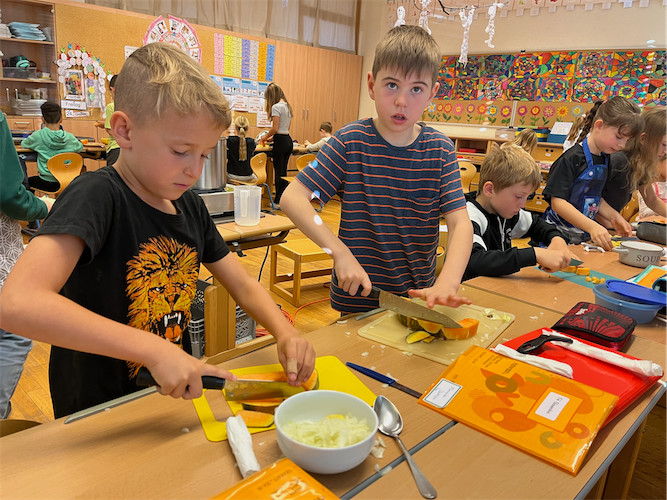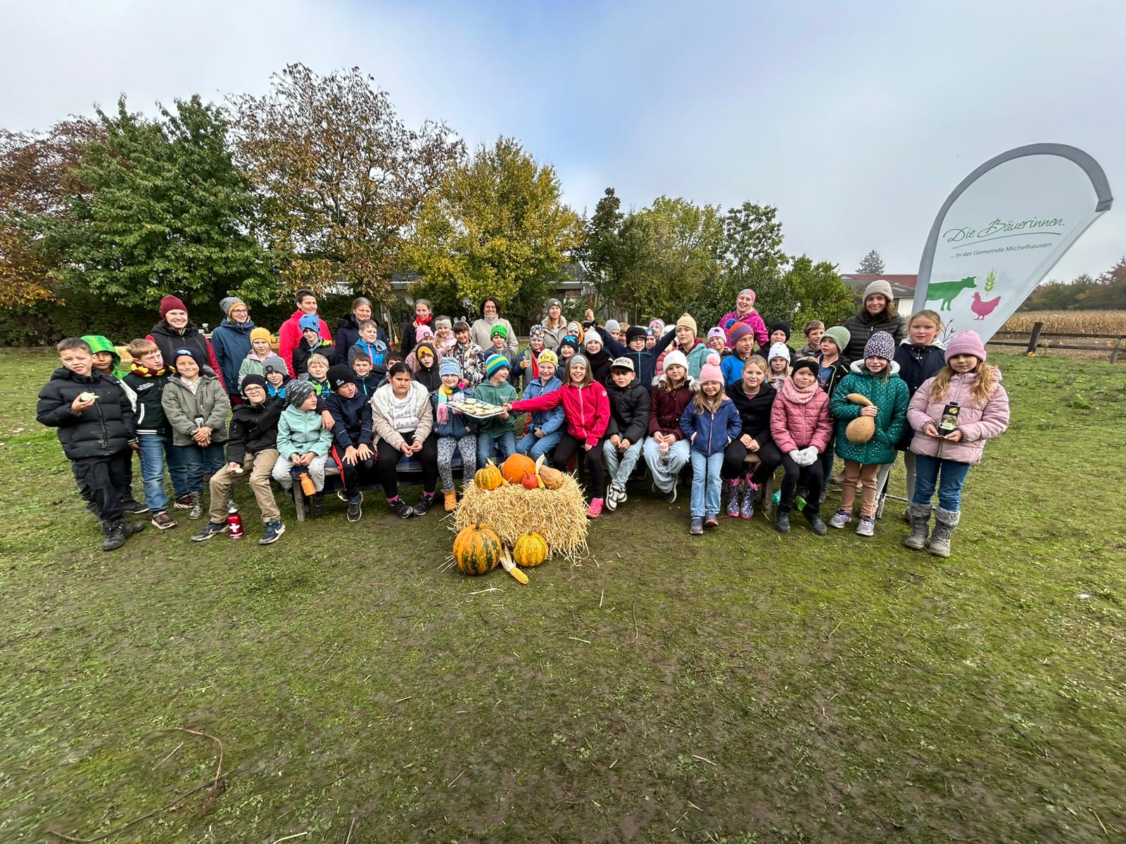 Anlässlich des Welternährungstage besuchten die Bäuerinnen der Gemeinde die 3. Klassen. Es gab Stationen zum Thema Kürbis. Die Kinder erfuhren, wie der Kürbis wächst und pressten Kernöl. Außerdem verkosteten die Kinder allerhand Köstlichkeiten mit Kürbis.3a3b