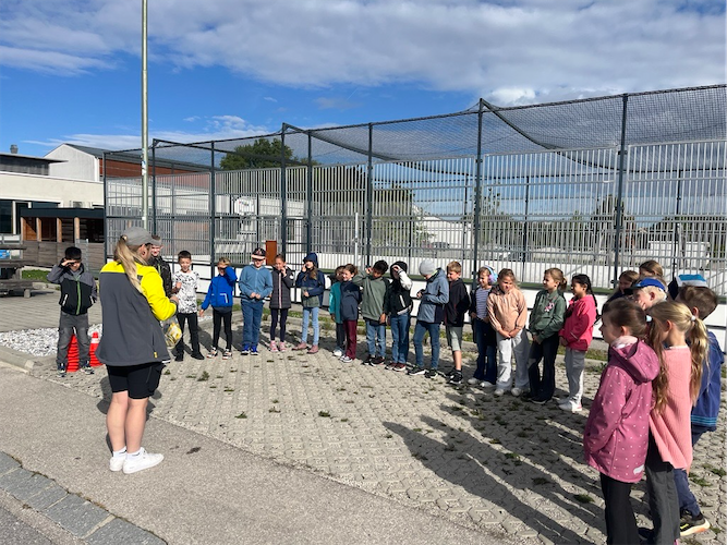 Die Kinder der dritten Klassen nahmen heute am Workshop "Hallo Auto" vom ÖAMTC teil. Sie erfuhren dabei alles hautnah über den Bremsweg und durften selbst eine Zielbremsung durchführen.