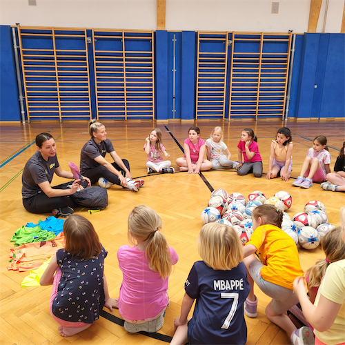 Die Mädchen der ersten und zweiten Klassen durften heute an einer Fußballschnupperstunde teilnehmen. Dabei machten Profi-Kickerinnen von Sportland Niederösterreich auf den Frauenfußball neugierig. Mehr Fotos gibt es in der Fotogalerie.
