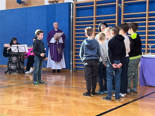 Am Freitag vor den Osterferien fand der vorösterliche Gottesdienst statt. Unsere Religionslehrerin bereitete den Gottesdienst mit vielen Kindern aus unterschiedlichen Klassen vor. Es wurde die Passion Jesu kindgerecht nachgespielt. Pfarrer Jan Dudka feierte mit uns den Gottesdienst, den Frau Lehrer Ebersberger und Pia Rödl musikalisch begleiteten.