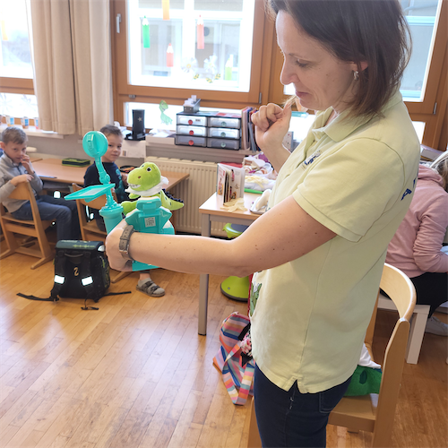 Das zweite Mal in diesem Schuljahr besuchte Krokolina mit der Zahngesundheitserzieherin vom Projekt Apollonia die Kinder. Dieses Mal erklärte sie den Kindern der ersten Klassen die Aufgaben des Zahnarztes. In den zweiten Klassen war das Thema "Zahnspangen" aktuell. Natürlich wurde auch das richtige Zähneputzen geübt. Mehr Fotos gibt es hier: 1a2b