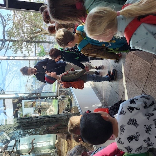 Bei einer Führung über die Superkräfte der Tiere erfuhren die Kinder der 1a und 1b interessante Dinge.Die Highlights waren das Krokodil, die Kois und natürlich die Affen. Mehr Fotos befinden sich in der Fotogalerie.