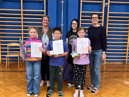 Vor den Osterferien wurden die drei Kinder, die am besten beim Bewerb "Känguru der Mathematik" abgeschnitten haben, geehrt. Dies sind Sophie Kostka, Timo Rührup und Noémi Ördög.
